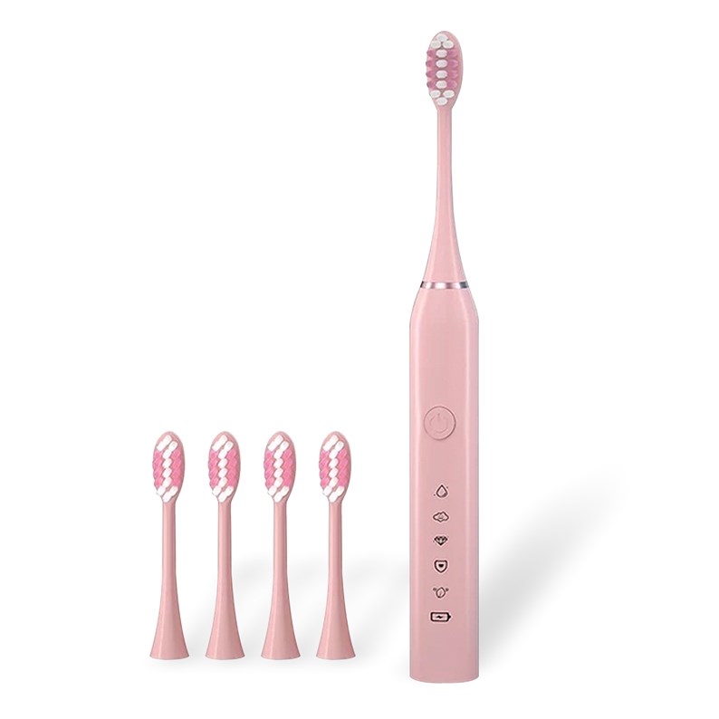 Brosse à dents électrique sonique : • Modes nettoyer, polir, blanchir, sensible et massage, interchangeables depuis le bouton interactif. • Tête à poils arrondis longue durée. • Moteur à suspension magnétique à force constante. • Comprend 5 têtes et un câble de chargement USB.