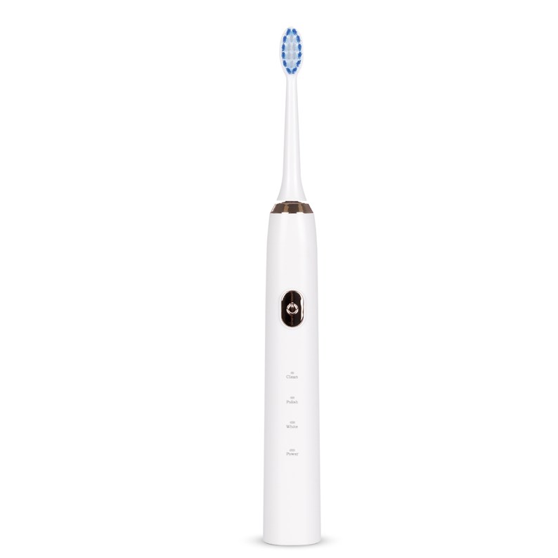 Brosse à dents électrique sonique ET01 : • Modes nettoyage, polissage et blanchiment, interchangeables depuis le bouton interactif. • Tête à poils arrondis longue durée. • Moteur à suspension magnétique à force constante. • Comprend 2 têtes et un câble de chargement USB.