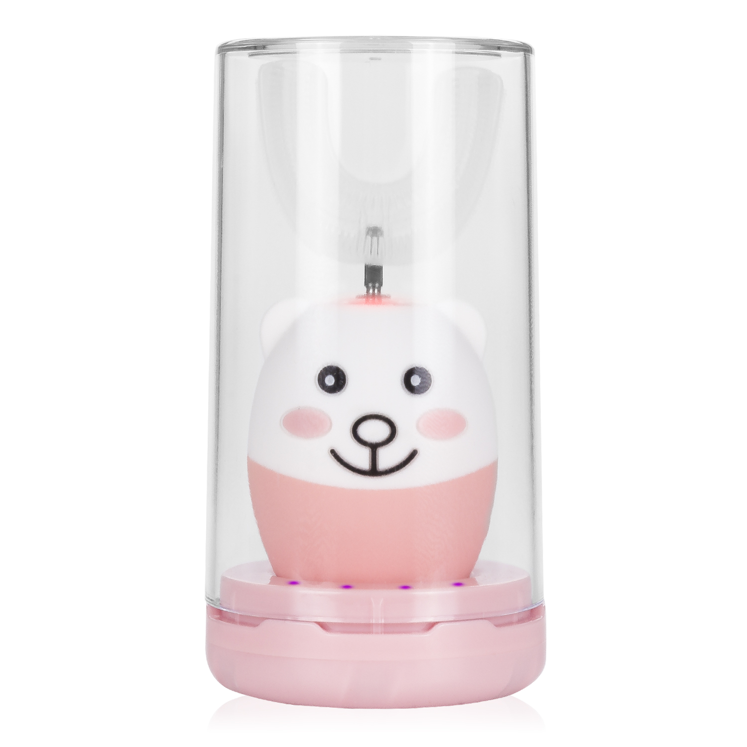 Brosse à dents électrique sonique en forme de U pour enfant ET08 : • Vibration haute fréquence, suspension magnétique, 48 000 vibrations par minute. • 4 modes de brossage : intensif, normal, massage et blanchiment. Minuterie de 45 secondes. • Fabriqué en silicone antibactérien. Poils antibactériens, avec nettoyage à 45°. • Comprend une lumière antibactérienne pour désinfecter la brosse après utilisation, grâce au capuchon inclus. Base avec ventilateur de séchage. • Chargement via base de chargement sans fil, avec connexion via câble USB (inclus).