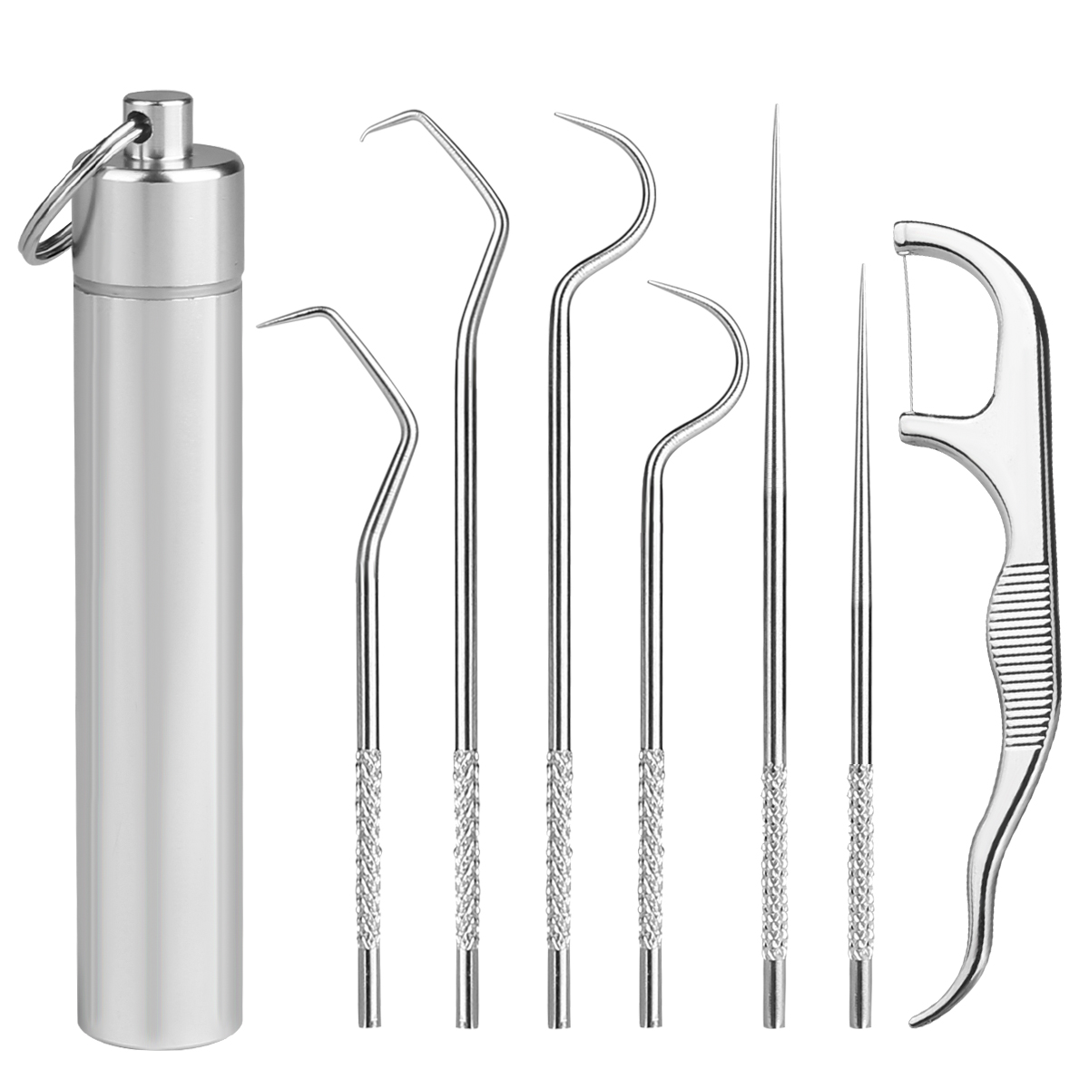 • Le set comprend un cure-dent portable, un artefact interdentaire et un crochet pour enlever les restes alimentaires coincés entre les dents.