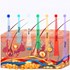 • Lumière rouge (640nm) : stimulera la production de collagène, le collagène est une protéine essentielle utilisée pour réparer le tissu endommagé et remplacer le vieux tissu, idéal pour les ridules et augmenter l'élasticité de la peau ; et aidera également à réduire les gros pores.