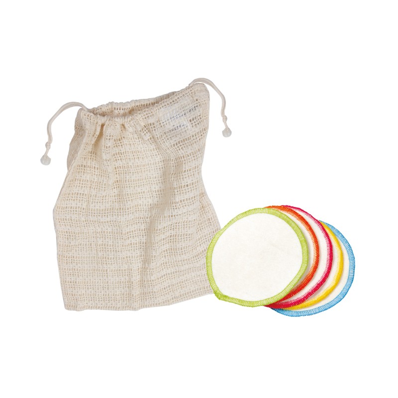Les 10 disques à démaquiller et leur pochette de rangement et de lavage sont les accessoires parfaits dans une salle de bain zéro déchet .