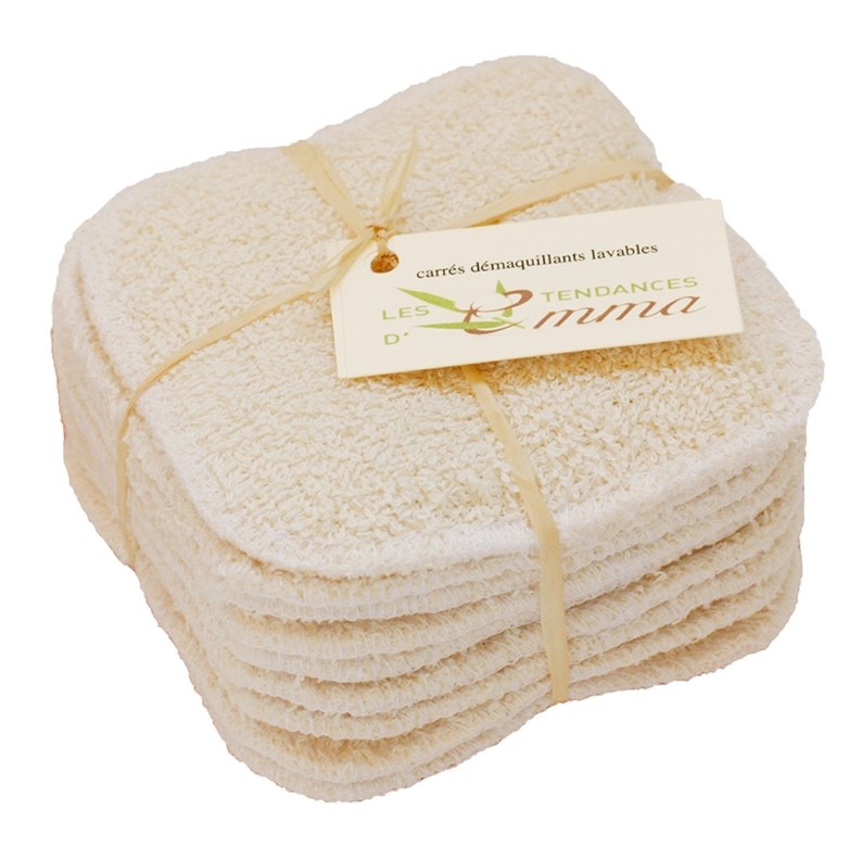 Lot de 10 carrés démaquillants lavables en coton bio biface. Ils remplaceront vos cotons jetables sans changer vos habitudes. Ces carrés se lavent à la machine et sont prévus pour durer longtemps, très longtemps.
