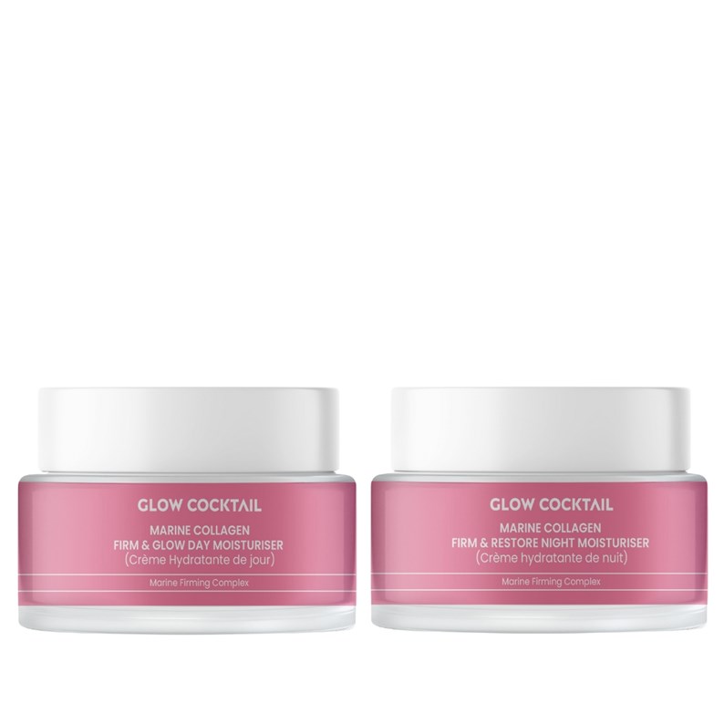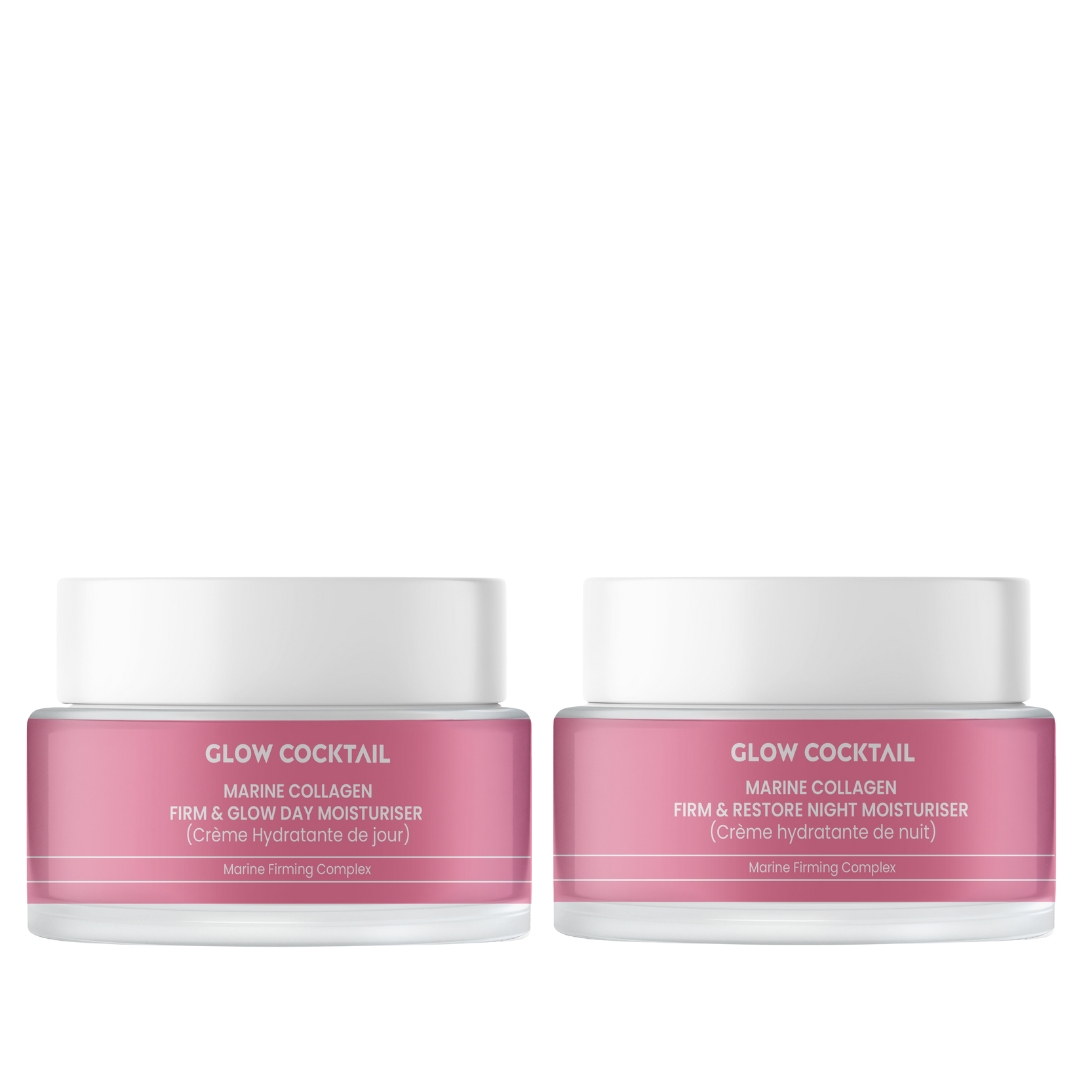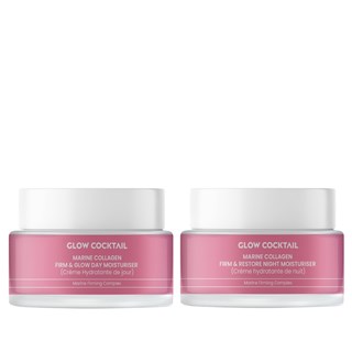 MARINE COLLAGEN FIRM & GLOW DAY MOISTURISER 50ml + MARINE COLLAGEN FIRM & RESTORE NIGHT MOISTURISER 50mlAqua, Octocrylene, Ethylhexyl Methoxycinnamate, Isopropyl Myristate, Ethylhexyl Salicylate, Butyl Methoxydibenzoylmethane, Prunus Amygdalus Dulcis Oil, Glyceryl Stearate SE, Glycerin, Cetearyl Alcohol, Glyceryl Stearate Citrate, Trehalose, Soluble Collagen, Sodium Hyaluronate, Hyaluronic Acid, Cera Alba, Phenoxyethanol, Parfum, Propylene Glycol, Acrylates/C10-30 Alkyl Acrylate Crosspolymer, Ethylhexylglycerin, Sodium Hydroxide, BHT, Trisodium EDTA, Potassium Sorbate, Acetyl Cedrene, Hexamethylindanopyran, Terpineol, Isoeugenyl Acetate, Pinene. , Aqua, Prunus Amygdalus Dulcis Oil, Coco-Caprylate, Isopropyl Palmitate, Glycerin, Cetearyl Olivate, Cetearyl Alcohol, Sorbitan Olivate, Macadamia Integrifolia Seed Oil, Soluble Collagen, Palmitoyl Tripeptide-1, Palmitoyl Tetrapeptide-7, Tocopherol, Phenoxyethanol, Propylene Glycol, Parfum, Butylene Glycol, Ethylhexylglycerin, Potassium Sorbate, Sodium Hydroxide, Carbomer, Sodium Lactate, Trisodium EDTA, Polysorbate 20, Acetyl Cedrene, Hexamethylindanopyran, Terpineol, Isoeugenyl Acetate, Pinene