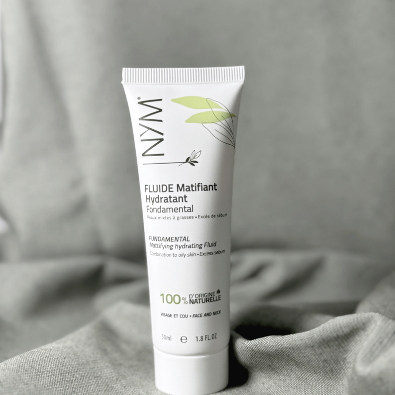 Fluide hydratant matifiant naturel au neem pour peaux mixtes à grasses.