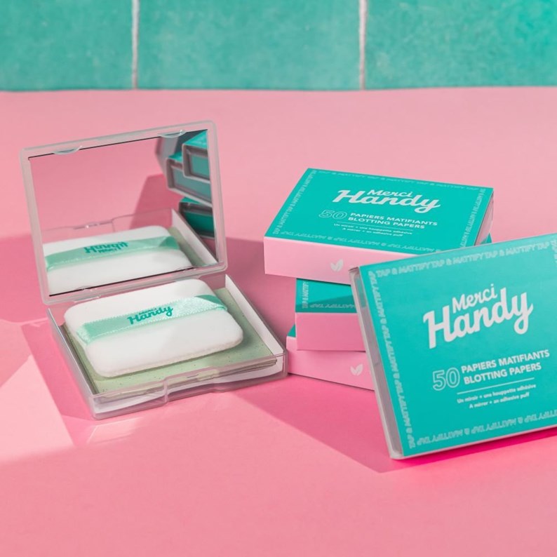 Papier matifiant naturel avec son petit miroir magique, à emporter partout avec toi.