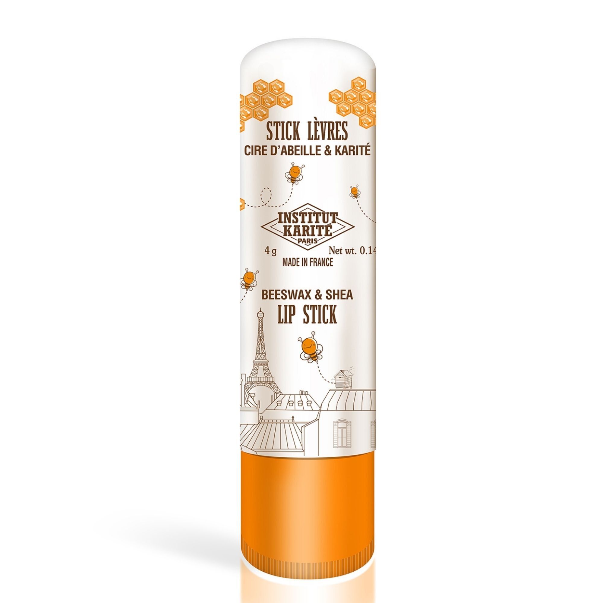 PARAFFINUM LIQUIDUM / MINERAL OIL / HUILE MINERALE, OZOKERITE, PARAFFIN, CERA ALBA / BEESWAX / CIRE D’ABEILLE, ISOPROPYL MYRISTATE, BUTYROSPERMUM PARKII (SHEA) BUTTER, CETYL PALMITATE, ETHYLHEXYL METHOXYCINNAMATE (OCTINOXATE), CANDELILLA CERA / EUPHORBIA CERIFERA (CANDELILLA) WAX / CIRE DE CANDELILLA, PROPYLENE GLYCOL DICAPRYLATE/DICAPRATE, PRUNUS ARMENIACA (APRICOT) KERNEL OIL, CALENDULA OFFICINALIS FLOWER EXTRACT, ARNICA MONTANA FLOWER EXTRACT, TOCOPHEROL, RICINUS COMMUNIS (CASTOR) SEED OIL, HELIANTHUS ANNUUS (SUNFLOWER) SEED OIL, PARFUM (FRAGRANCE), SOYBEAN GLYCERIDES, POLYHYDROXYSTEARIC ACID, BHT, CI 77891 (TITANIUM DIOXIDE)