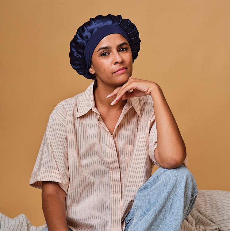 Bonnet de nuit en soie bleu nuit 19 mo