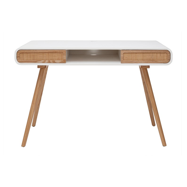 Bureau avec rangement blanc, cannage et bois clair l120 cm olympe