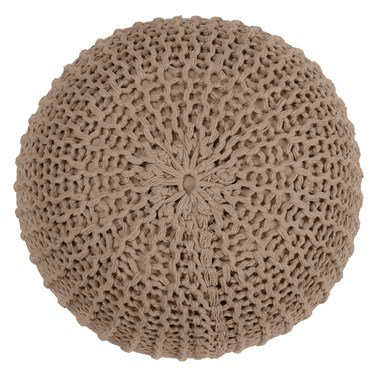 Pouf tricot rond en coton taupe d40 cm - elisa