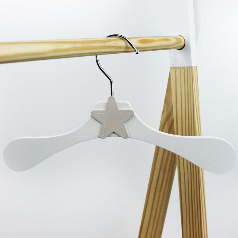 Dans les tons de gris/beige, ces cintres proposent une esthétique mixte qui s'adapte autant à la chambre d'un petit garçon qu'à celle d'une petite fille.