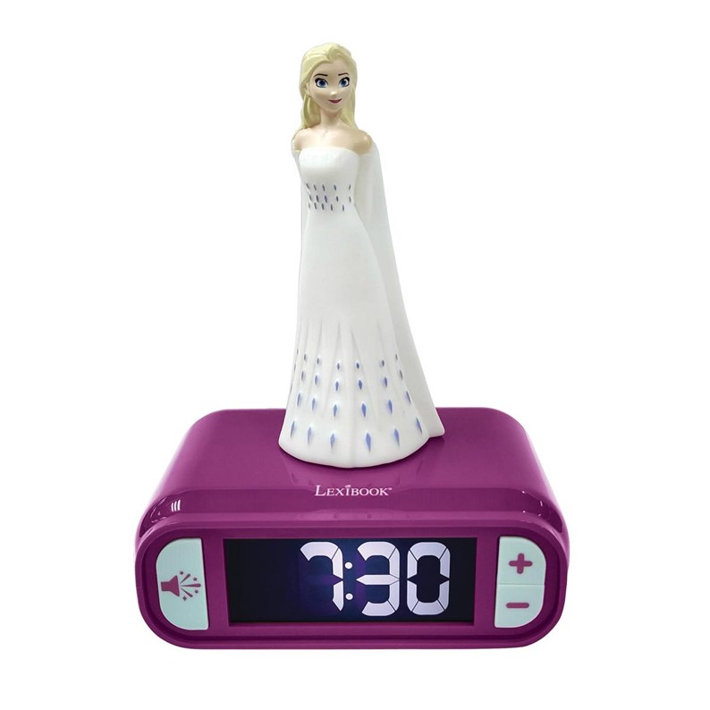 * Alarme avec volume réglable et un choix de sonneries inspirées de Frozen. Parfait pour se réveiller prêt à l'action !