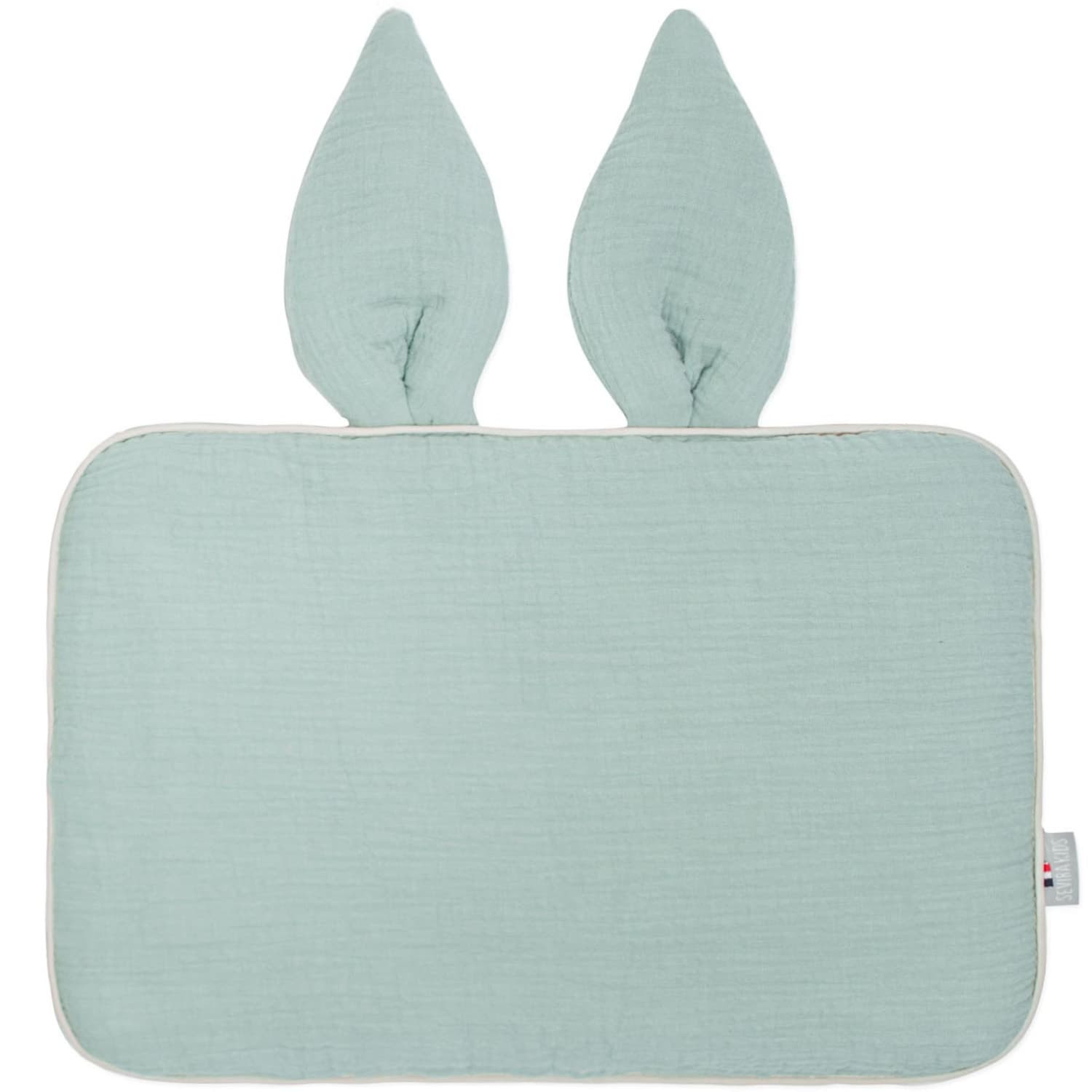 Pour en savoir un peu plus sur la l'oreiller extra-plat lapin Jeanne en gaze de coton, 100% made in France :
