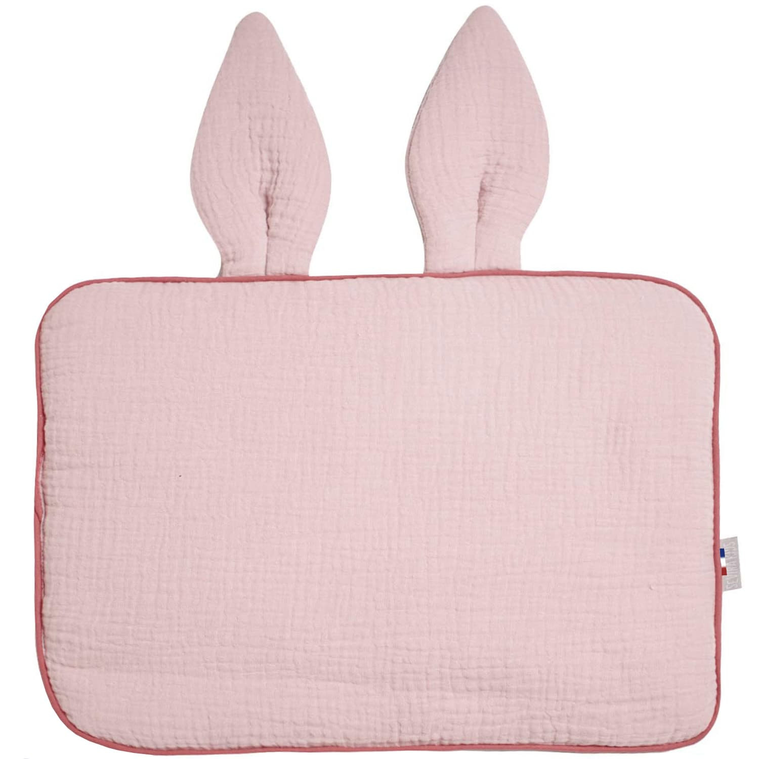 Pour en savoir un peu plus sur la l'oreiller extra-plat lapin Jeanne en gaze de coton, 100% made in France :