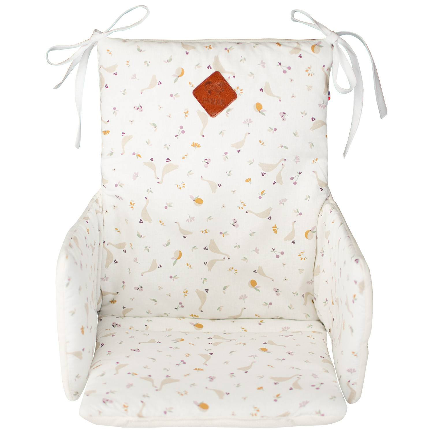 Offrez à votre bébé un confort inégalé avec notre coussin pour chaise haute de la Collection Sidonia. Adapté aux chaises hautes en bois classiques, ce coussin est équipé de quatre attaches robustes pour un maintien optimal et une installation facile. Grâce à sa conception réversible, choisissez le côté qui s'harmonise le mieux avec votre intérieur : un côté en coton illustré par de jolies petites oies de la campagne, et l'autre en douce matière velvet écru.