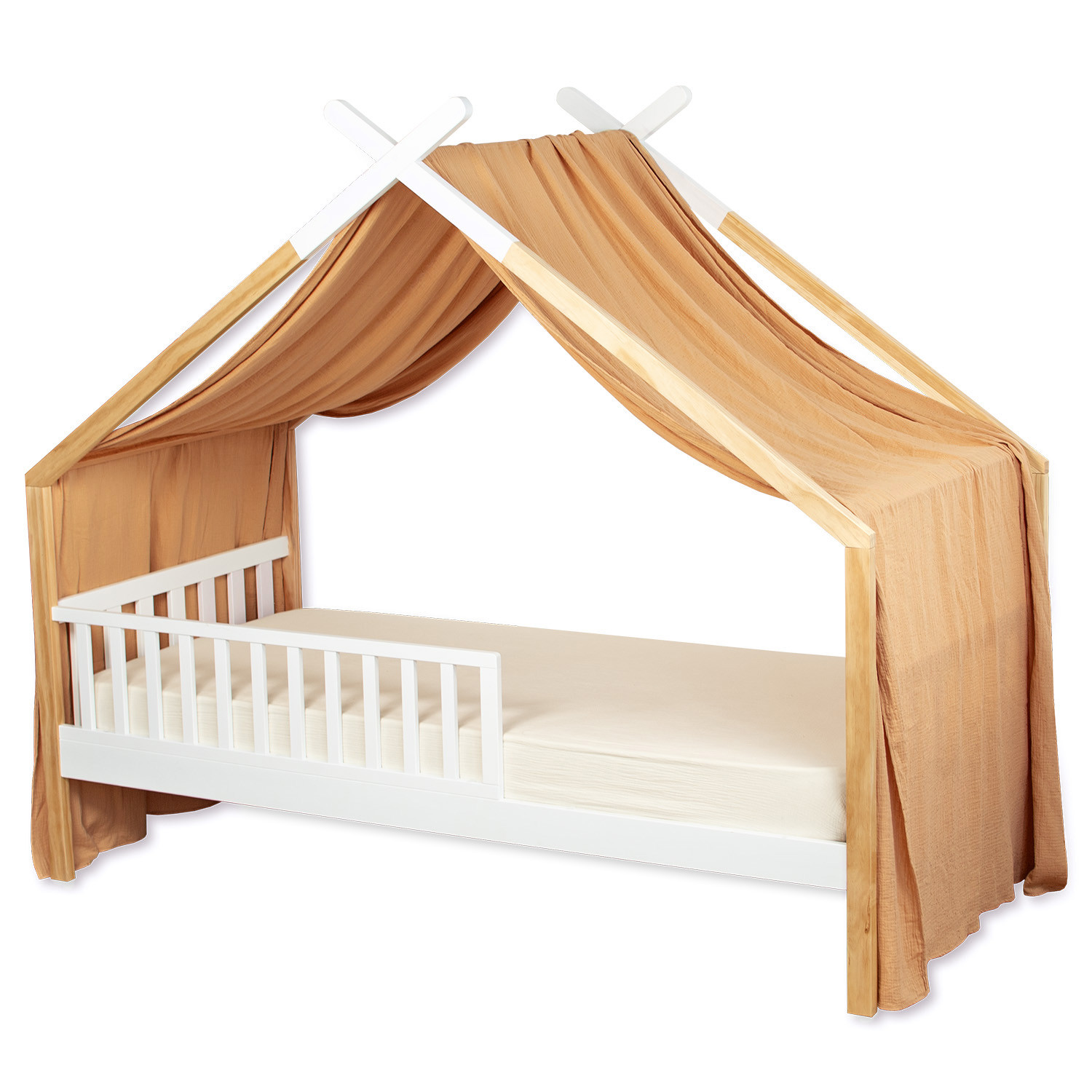 Ajoutez une touche d'élégance et de magie à la chambre de votre enfant grâce à notre ciel de lit cabane , également appelé toile de lit ou baldaquin . Conçu pour les lits cabane avec toit incliné (type maison), cet accessoire crée un espace intime et rassurant, parfait pour des nuits paisibles et des moments de jeu enchanteurs.