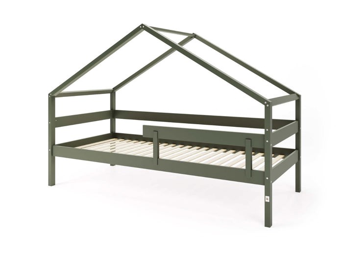 Le lit YappyHytte est fabriqué en bois de pin massif certifié FSC, avec une finition en cire naturelle écologique. Il est livré avec une base en lattes de contreplaqué ergonomiques et une barrière de sécurité amovible et verrouillable. Le cadre est surélevé de 10 cm pour faciliter le nettoyage. Compatible avec un matelas de 200 x 90 cm (non inclus), le lit est robuste et durable. Des tiroirs de rangement YappySpot ou un tiroir-lit YappyNap sont disponibles en option.