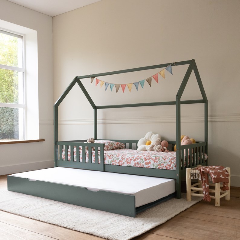Lit cabane gigogne pour enfant 190x90cm vert marceau