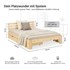 cadre de lit en pin massif, finition naturelle tiroirs en panneau dérivé du bois avec revêtement décoratif couleur : naturel matière de la housse du matelas : 100 % polyester blanc garnissage : mousse de confort PU convient aux personnes allergiques Dimensions ? lit et matelas : surface de couchage (l × L) : 120 × 200 cm dimensions extérieures du lit (l × L) : 124 × 210 cm hauteur tête de lit : 67 cm , pied de lit : 30 cm hauteur du bord du lit : 30 cm hauteur de rangement sous le lit : 18 cm épaisseur du matériau : 20 mm matelas (l × h × L) : 120 × 10 × 200 cm Dimensions par tiroir : dimensions extérieures (l × h × p) : 83 × 16 × 63,5 cm dimensions intérieures (l × h × p) : 73 × 9,5 × 59,5 cm