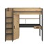Le couchage en hauteur permet d'optimiser l'espace en intégrant un vaste bureau équipé de rangements pour organiser son travail, ainsi qu'une armoire équipée d'étagères et d'une barre de penderie.