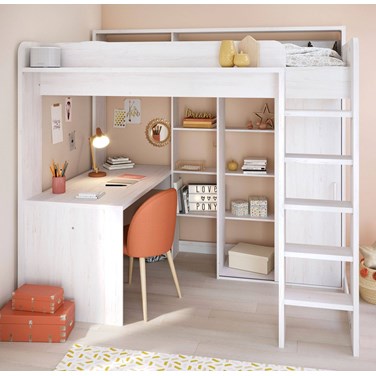 Le lit mezzanine Pierrick, 90x200 cm, apporte une vraie solution gain de place dans la chambre de votre enfant. Il est en effet très complet avec son espace couchage, son bureau, sa penderie et ses multiples niches de rangement.