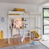 Ce lit mezzanine vous assure un réel gain d'espace dans la chambre. Equipé d'un bureau, votre enfant aura déjà son espace de travail, idéal pour faire ses devoirs ou dessiner et laisser parler toute sa créativité. Avec ses étagères incluses, il aura toute la place de ranger ses livres et ses jeux. L'espace disponible sous le lit lui permettra également d'aménager un coin détente et cosy.