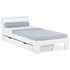 Notre confortable lit en bois 90x200 cm inspire surtout par sa beauté naturelle, son design intemporel et sa fabrication stable. Que ce soit dans la chambre à coucher, la chambre de jeunes ou la chambre d'amis, le lit s'intègre parfaitement dans toutes les chambres grâce à son design discret. Le cadre de lit, y compris la tête de lit, est fabriqué en pin massif et laqué en blanc. sommier inclus. Un coffre de lit pratique, inclus dans la livraison, offre un espace de rangement supplémentaire dans votre chambre à coucher. Le grand tiroir stable assure l'ordre et offre suffisamment de place pour le linge de lit, les oreillers, les couvertures, les vêtements et autres ustensiles.