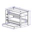 2 couchages 90x200cm Tablettes de dépose à l'arrière, profondeur 15.5cm 2 bacs de rangement à l'avant de chaque couchage, largeur 13cm et profondeur 14cm Accès par 1 échelle droite avec montants verticaux épaisseur 25mm. Bande antidérapante sur chaque marche.