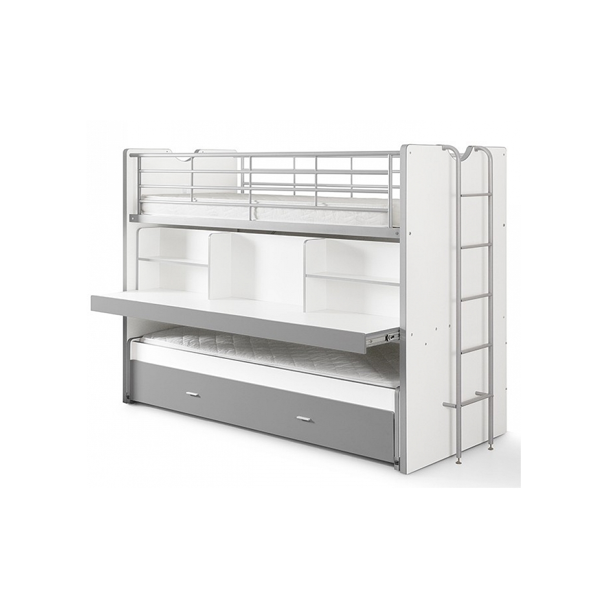 Adoptez pour ce lit superposé Enfant ""Bonny"" qui accueillera parfaitement deux enfants, mais deviendra aussi un atout idéal au moment de faire les devoirs avec son bureau coulissant ! Avec son échelle, l'accès au lit supérieur se fait en toute sécurité. Le lit multifonctions à la fois design et pratique. Il fera le bonheur de vos enfants ainsi que le vôtre. En combinant deux lits et un bureau c'est un gain de place non négligeable. Dimensions : L. 211 x l. 101 x H. 161 cm. Matériau : Bois. Sommier : Inclus. Matelas : Non Inclus (voir nos produits). Adapté pour matelas : 90 x 200 cm. Poids Supporté : Jusqu'à 100kg. À partir de 6 ans. Nombre de colis : 5 Colis. À monter soi-même à l'aide de la notice de montage. Livré avec sommier et sans matelas ni linge de lit