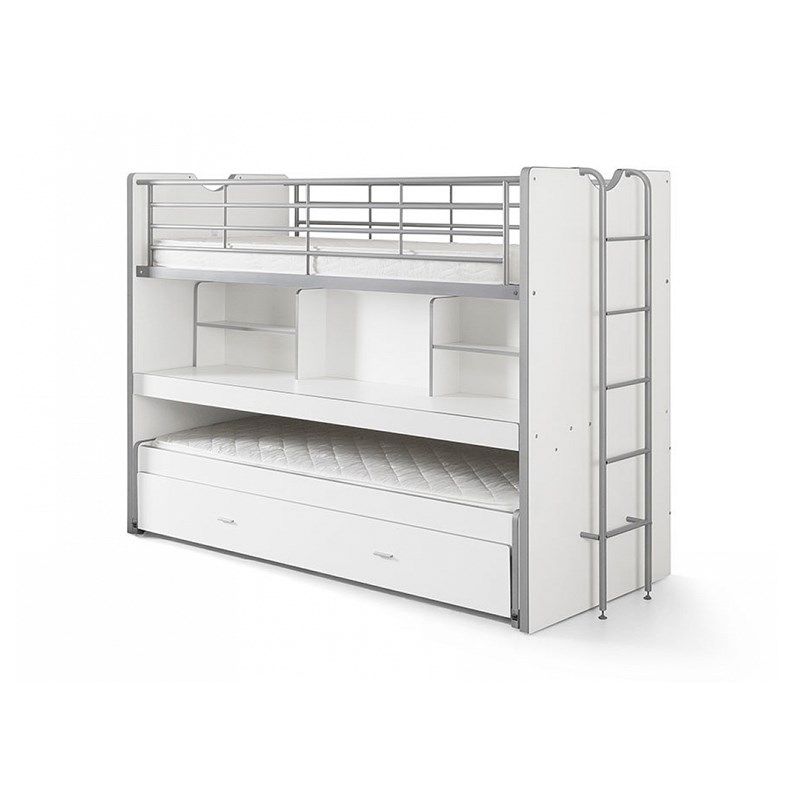 Adoptez pour ce lit superposé Enfant ""Bonny"" qui accueillera parfaitement deux enfants, mais deviendra aussi un atout idéal au moment de faire les devoirs avec son bureau coulissant ! Avec son échelle, l'accès au lit supérieur se fait en toute sécurité. Le lit multifonctions à la fois design et pratique. Il fera le bonheur de vos enfants ainsi que le vôtre. En combinant deux lits et un bureau c'est un gain de place non négligeable. Dimensions : L. 211 x l. 101 x H. 161 cm. Matériau : Bois. Sommier : Inclus. Matelas : Non Inclus (voir nos produits). Adapté pour matelas : 90 x 200 cm. Poids Supporté : Jusqu'à 100kg. À partir de 6 ans. Nombre de colis : 5 Colis. À monter soi-même à l'aide de la notice de montage. Livré avec sommier et sans matelas ni linge de lit