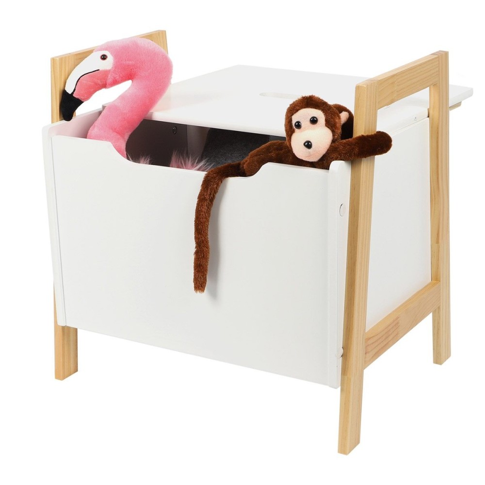 Découvrez ce joli et pratique coffre à jouets empilable Sweet couleur blanc et bois naturel qui prendra place dans la chambre de votre enfant au style scandinave.