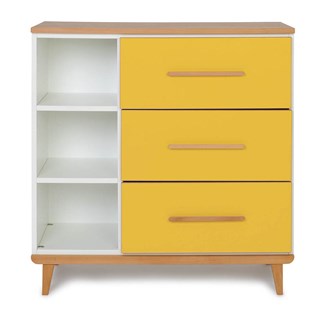 La commode 3 tiroirs pour enfant de la collection NADO by A.K., est à la fois originale et astucieuse, elle mêle à merveille design vintage et esprit contemporain. Ses lignes épurées, sublimées par le coloris sunshine yellow, de style scandinave s'intégrera parfaitement dans une chambre d'enfant.