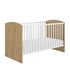 Un joli duo aux décors chêne blond et blanc pour créer un véritable petit cocon. Ce lit aux dimensions 60x120cm associé à cette commode viendront créer une ambiance douce et moderne pour votre bébé. De jolis arrondis sur les tête et pied de lit apportent douceur et délicatesse à ce lit. Il est composé de deux barrières à barreaux en bois massif et d'un sommier avec de véritables lattes comme les grands. Le sommier est réglable sur deux hauteurs : une position haute pour les nouveaux nés et une position basse quand l'enfant grandit et commence à se mettre debout dans son lit. La commode Arthur dispose de beaux volumes. Elle est dotée d'une niche pour un accès facile aux produits du quotidien, de deux portes, ainsi qu'une tablette intérieure. Combinez cette commode avec l'option plan à langer pour créer un meuble 2-en-1 : table à langer et rangement pour les vêtements de bébé. De jolies poignées rondes et blanches cerclées de noir viennent signer cette chambre pour un design contemporain.