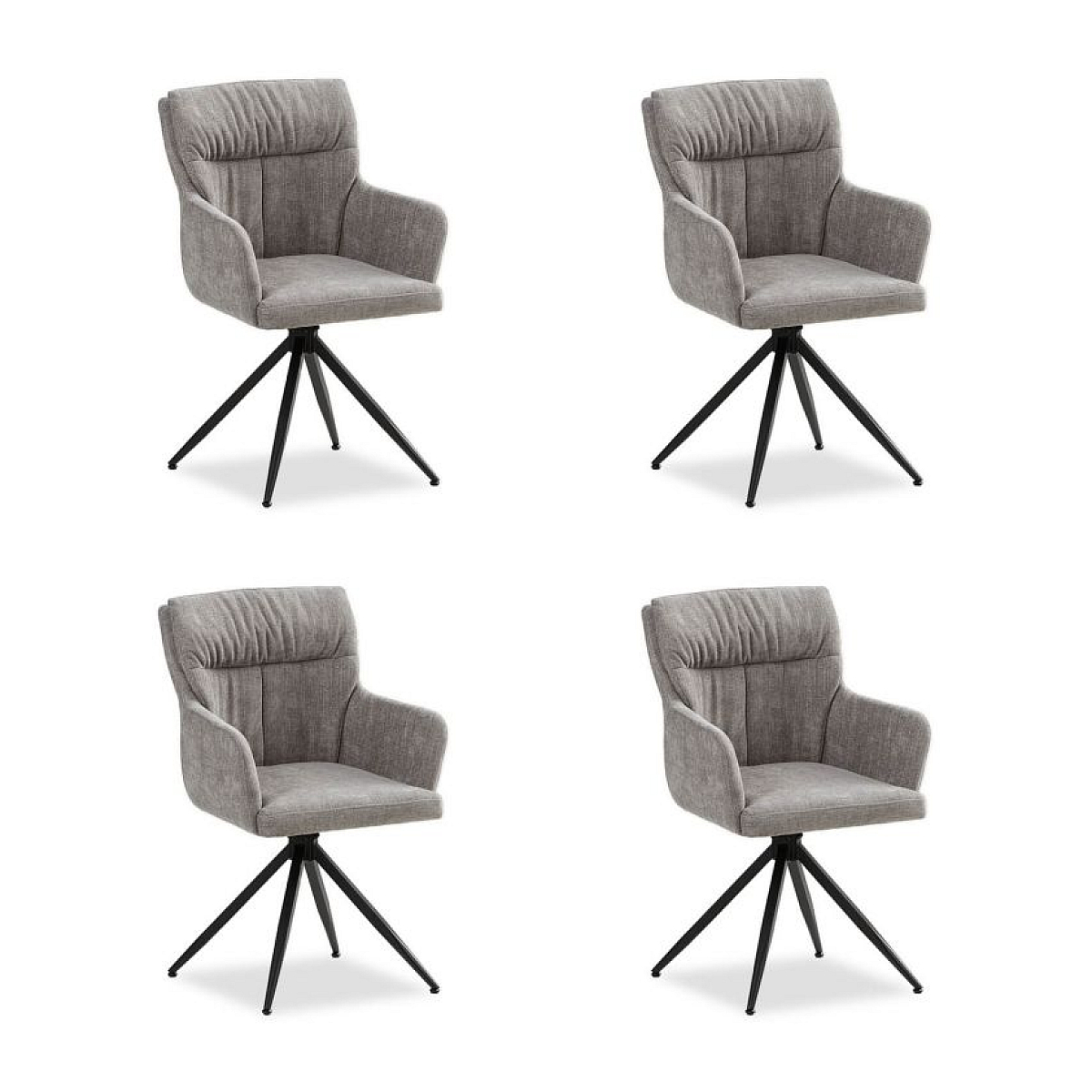 Détails du produit : 4 chaises de cuisine modernes rembourrées avec revêtement en lin gris assise confortable, pivotante à 360 degrés accoudoirs et dossier confortables dossier avec coussin confortable (non amovible) conception robuste avec pieds en métal noir massif facile à assembler capacité de charge maximale par chaise : 120 kg Matériaux et couleur : chaises de salon avec revêtement en lin gris clair confortable tissu en 100 % polyester pieds de chaise noirs en acier revêtu coussin de dossier confortable rempli de mousse et de ouate de rembourrage couleur : gris Dimensions par chaise : dimensions (L x H x P) : 57 x 89 x 60 cm largeur de l'assise : 43 cm hauteur de l'assise : 50 cm profondeur de l'assise : 44 cm hauteur du dossier : 43 cm hauteur des accoudoirs (à partir du sol) : environ 65,5 cm