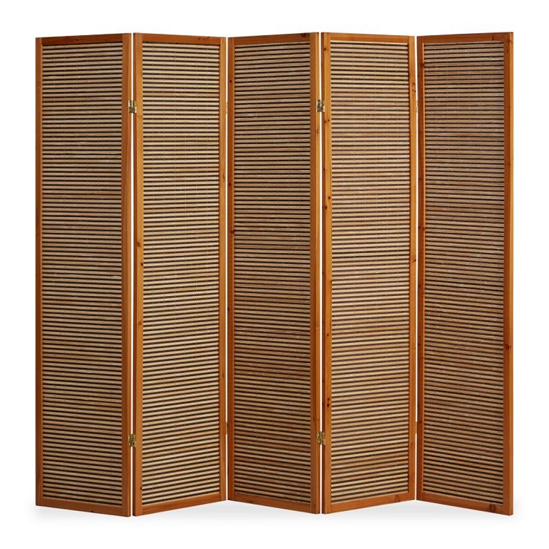 Paravent bois 5 pans bambou marron