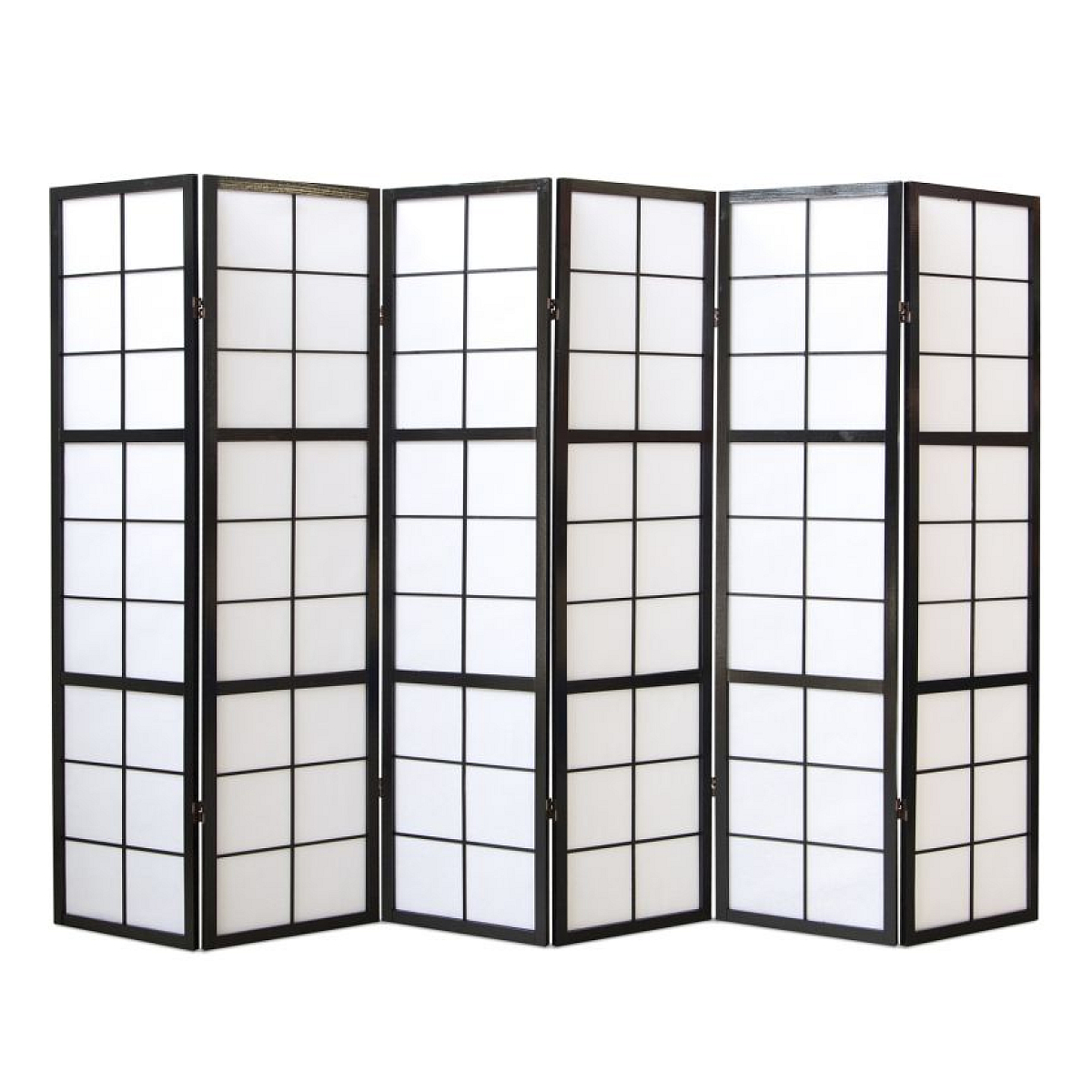 Détails du produit: 6-panneaux Paravent pliant et planter légère charnière bidirectionnelle Matériaux et couleurs: bois encadrement en noir papier du riz en blanc Dimensions: Hauteur: 175 cm Largeur: 264 cm Profondeur: 2,2 cm Largeur par panneaux 44 cm