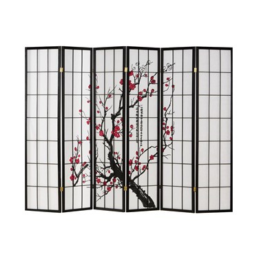 Paravent bois 6 pans noir Shoji fleurs  En savoir plus
