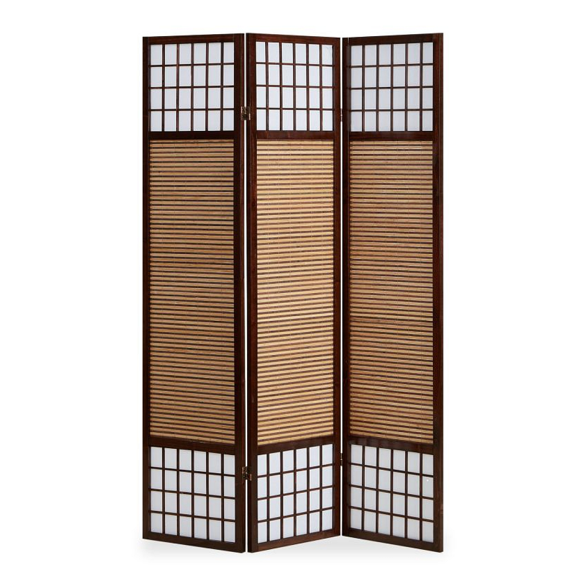 Détails du produit: 3-panneaux Paravent pliant et planter légère charnière bidirectionnelle Matériaux et couleurs: bois encadrement en brun foncé papier du riz en blanc et bambou Dimensions: Hauteur: 175 cm Largeur: 132 cm Profondeur: 2,2 cm Largeur par panneaux 44 cm