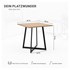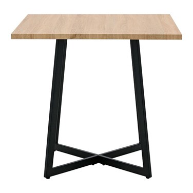 Matériau et couleur : table en panneau dérivé du bois massif (MDF), revêtue d'un film décor chêne. veinage du bois bien visible. piètement métallique noir robuste (revêtement par poudre). couleur : naturel et noir Dimensions : longueur : 80 cm. largeur : 80 cm. hauteur : 76 cm