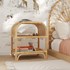 La fibre de rotin est une fibre naturelle qui inspire les designers depuis bien longtemps. On aime sa teinte claire et ses courbes gracieuses. Cette table de chevet offre deux étagères pratiques afin de déposer quelques objets et ce dont vous avez besoin pour la nuit. Livre, téléphone, magazine ou plaid sont ainsi à portée de main. Son plateau agrémenté d’une bordure sera parfait afin de recevoir un luminaire tout en évitant les chutes accidentelles.