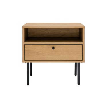 Table de chevet avec rangements finition bois clair chêne et métal noir pernelle