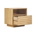 Cette table de nuit est unique grâce à sa façade texturée , avec des rainures horizontales sculptées, lui conférant une apparence raffinée et moderne . Ce détail subtil rappelle les éléments naturels et la tranquillité du design japonais, tout en ajoutant un attrait visuel qui s'intègre bien dans un intérieur contemporain . La niche ouverte située au-dessus du tiroir offre un espace supplémentaire idéal pour ranger les objets du quotidien, comme des livres et autres accessoires.