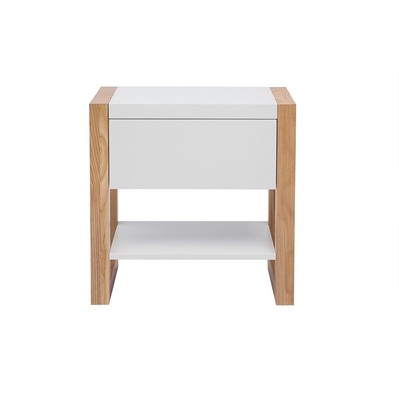Grâce à la table de chevet blanc et bois ARMEL , donnez un style moderne et épuré à votre chambre.
