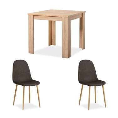 Table salle à manger 80x80 2 chaises anthracite chêne  En savoir plus