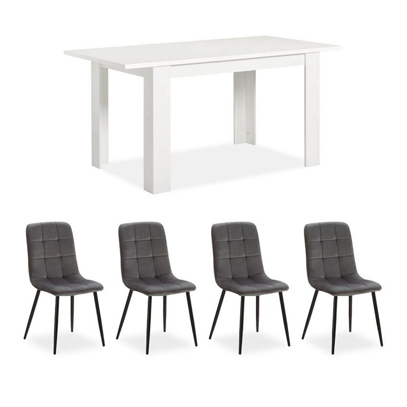 Table à manger blanche 120x80 cm + 4 chaises velours gris  En savoir plus