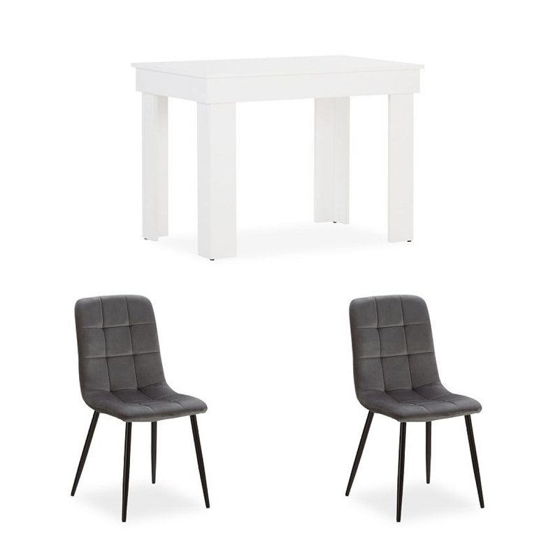 Table de salle à manger 90×60 cm blanche avec 2 chaises en velours gris  En savoir plus