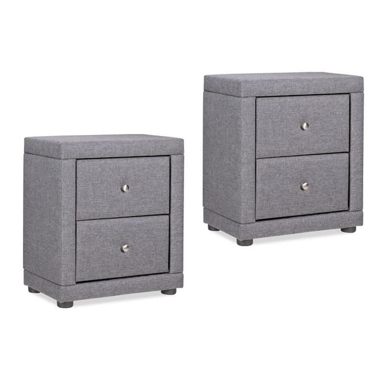 Tables de chevet lot de 2 tissu gris avec tiroirs  En savoir plus