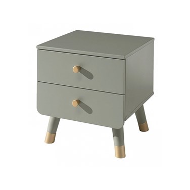 Table de chevet d'inspiration scandinave avec des boutons de porte dorés et des pieds obliques aux finitions dorées. La table de chevet Vipack Billy coloris vert olive est tendance et donnera du style à la chambre de votre enfant. Largeur 43.2 cm Profondeur 40 cm Hauteur 45.2 cm Hauteur des pieds 17 cm Épaisseur des parois 1.5 cm 2 tiroirs