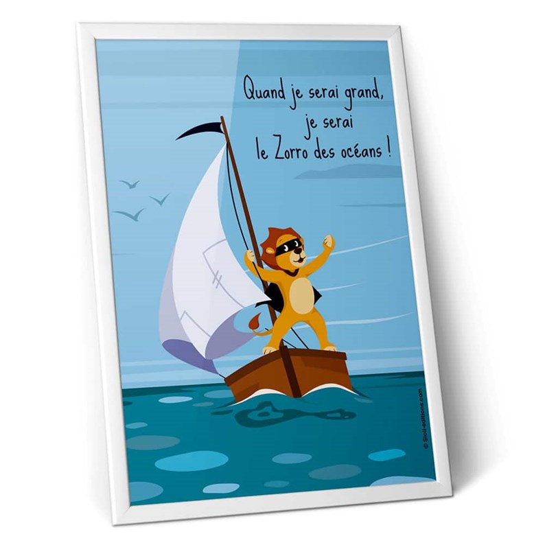 Cette affiche représente une jolie scène issue de nos albums jeunesse « Les petits mousses à la rescousse de la planète ». Parfaite pour faire rêver les enfants et susciter leur curiosité.