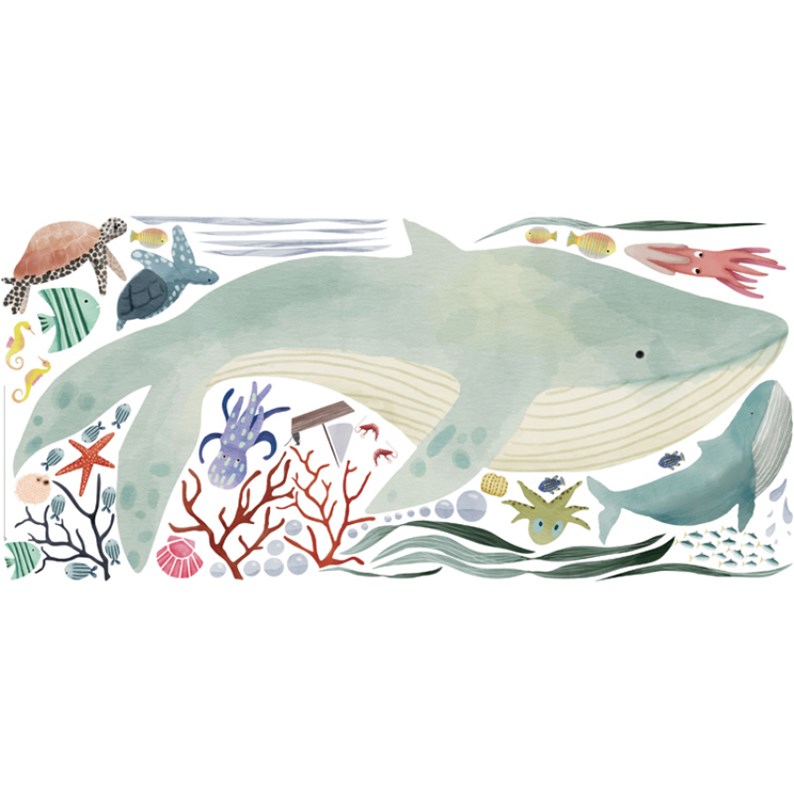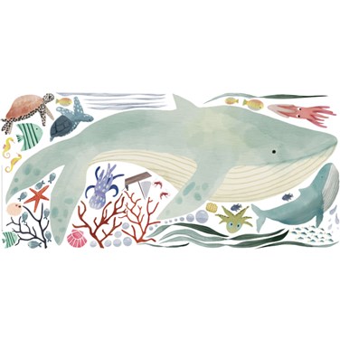 Le sticker géant L'océan invite les petits explorateurs à plonger dans un univers marin peuplé de baleines, tortues et poissons colorés. Facile à poser, il apporte une touche apaisante à la chambre tout en stimulant l'imaginaire des enfants.